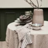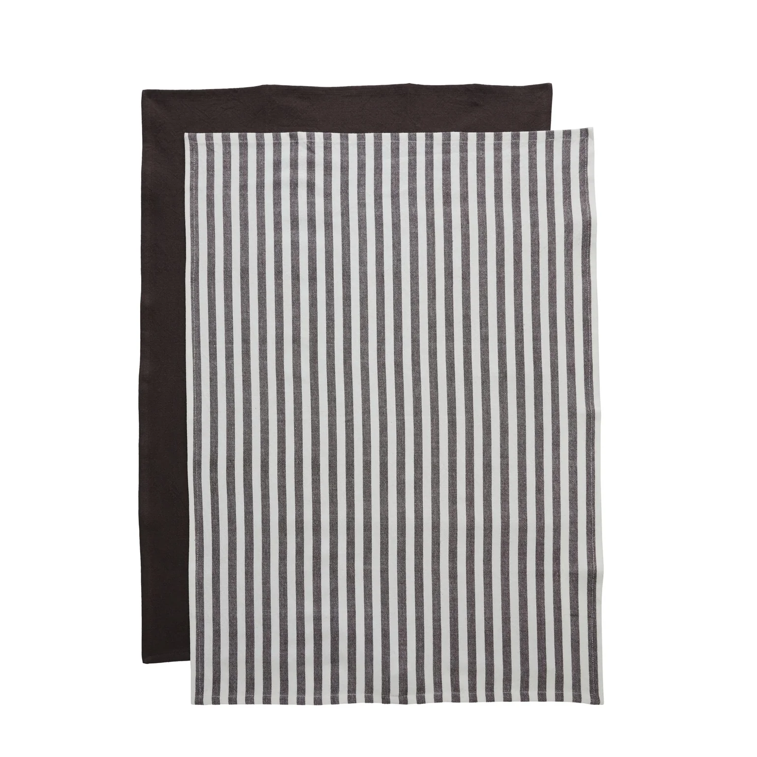 Set of 2 cotton tea towels Make kitchen tasks a little more stylish with this set of two tea towels from Lene Bjerre. The set includes one solid-colored and one striped towel in matching brown and brown cotton. The simple Nordic design combined with high functionality makes them both a decorative and practical choice in the kitchen.