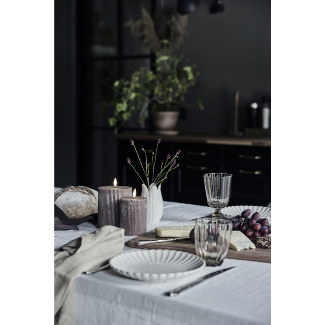 Elegant in its simplicity, this taupe glass wine glass from Lene Bjerre is a timeless addition to any tablesetting. With softly curved edges and a refined scalloped silhouette, it catches the light beautifully and adds a touch of sophistication to any occasion — whether for everyday dining or festive gatherings. A perfect example of Scandinavian simplicity with a subtle decorative twist.