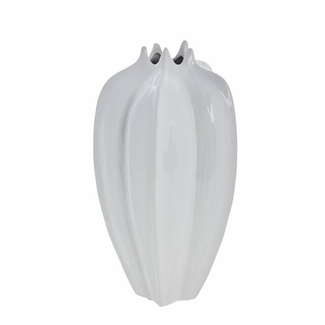 Elevate your interior with the organic elegance of this sculptural vase from Lene Bjerre. Crafted in glossy white ceramics, its soft, flowing form is inspired by nature’s delicate curves, creating a piece that feels both modern and timeless. The unique opening and textured silhouette make it a striking decorative accent, whether styled with fresh blooms, dried branches, or left empty as a sculptural statement. A perfect blend of Scandinavian simplicity and artistic refinement, it brings lightness and sophistication to any room.