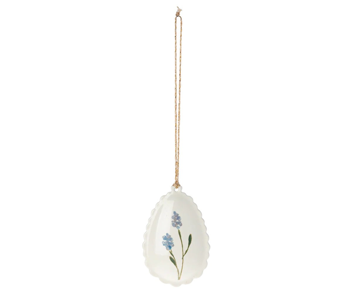 Metal Easter egg ornaments with hand-painted details. They are perfect on a branch as decoration or on the Easter table. Mix the different colours with other Maileg Easter ornaments to complete your decoration.