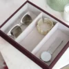 Glæsileg skartgripaskrín sem eru klædd með flauelefni að innan og sterku leðurlíki að utan. Bakkinn er fáanlegur í fimm litum.